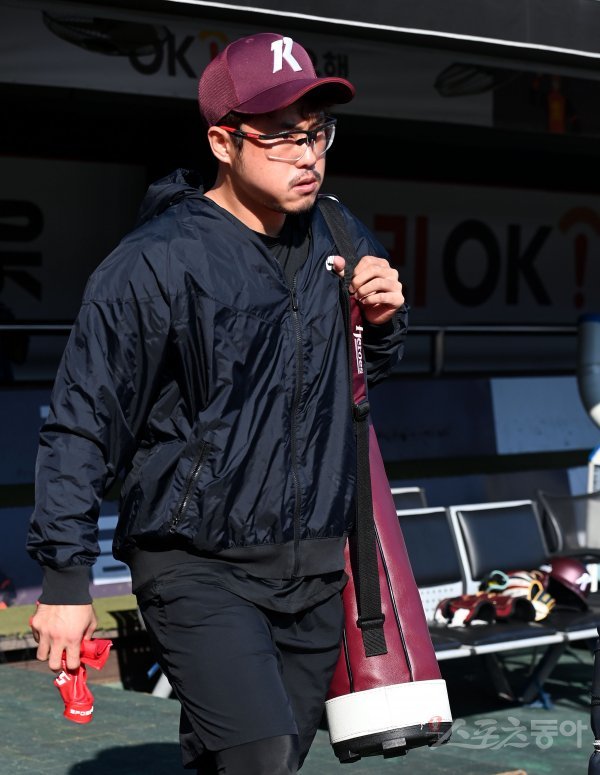 17일 경기도 수원 kt위즈파크에서 ‘2022 신한은행 SOL KBO리그’ kt 위즈와 키움 히어로즈의 경기가 열린다. 경기 전 키움 이지영이 훈련을 준비하고 있다.