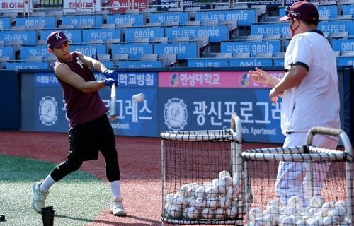 17일 경기도 수원 kt위즈파크에서 ‘2022 신한은행 SOL KBO리그’ kt 위즈와 키움 히어로즈의 경기가 열린다. 경기 전 키움 이정후가 타격 훈련을 하고 있다.
