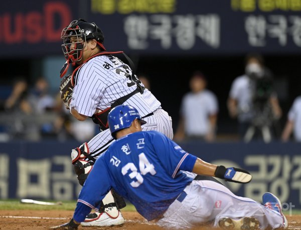 17일 서울 잠실야구장에서 ‘2022 신한은행 MY CAR KBO리그’ 삼성 라이온즈와 LG 트윈스 경기가 열렸다. 2회초 1사 만루 삼성 1루수 앞 땅볼 때 LG 허도환이 3루주자를 포스 아웃시키고 있다.