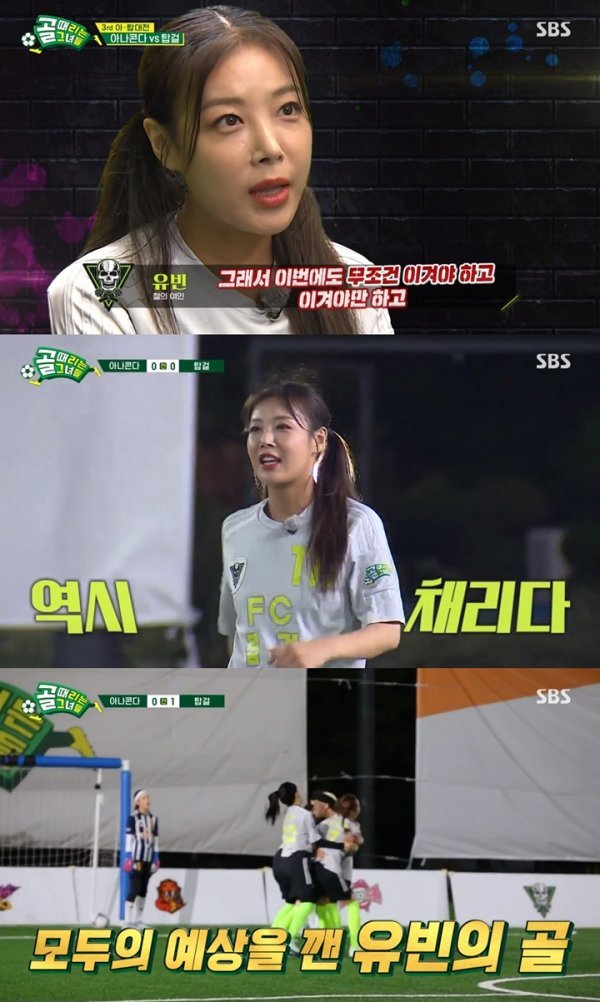 유빈은 17일 방송된 SBS \'골 때리는 그녀들\'(이하 \'골때녀\')에서 \'FC 아나콘다\'와 세 번째 숙명의 맞대결을 펼쳤다.