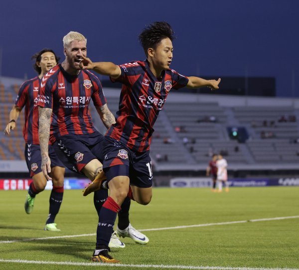 K리그1(1부) 수원FC의 화력이 뜨겁다. 팀당 26~27경기를 소화한 ‘하나원큐 K리그1 2022’에서 수원FC는 전체 12개 팀 가운데 가장 많은 득점을 올렸다. 무려 43골이다. 매 경기 1.5골 이상 꾸준히 뽑았다. 선두를 독주하고 있는 울산 현대(41골)보다 많다. 15일 강원FC와 28라운드 원정경기에서도 펠레스코어(3-2)로 승리했다.