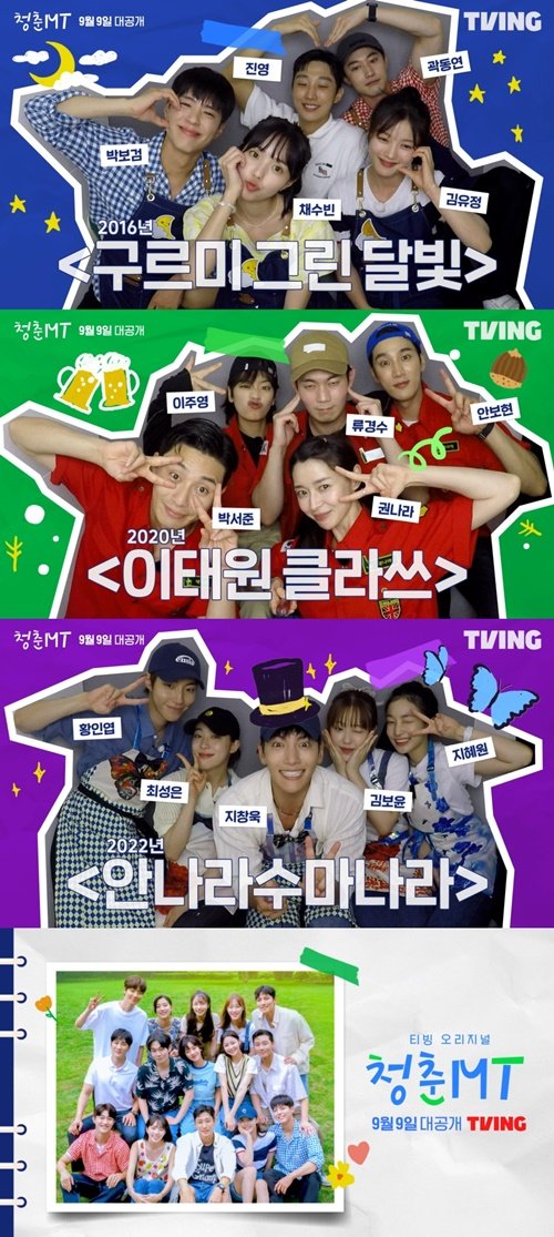 \'청춘MT\'(기획 김성윤/ 연출 정종찬)는 드라마 \'구르미 그린 달빛\' \'이태원 클라쓰\' \'안나라수마나라\' 출연 배우들의 연합 MT 예능이다.