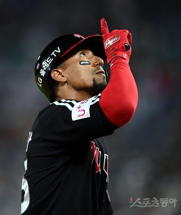 18일 인천 SSG 랜더스필드에서 ‘2022 신한은행 SOL KBO리그’ SSG 랜더스와 LG 트윈스의 경기가 열렸다. 7회초 1사에서 LG 가르시아가 연타석 홈런을 쏘아 올린 후 세리머니를 펼치고 있다.