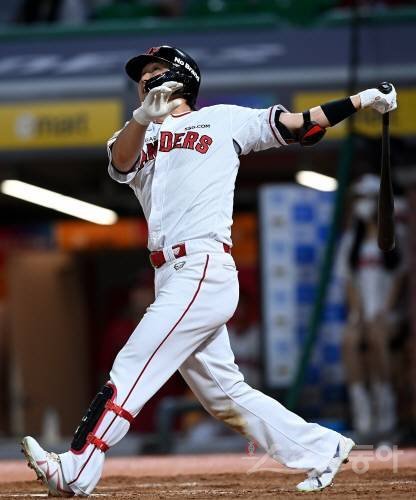 18일 인천 SSG 랜더스필드에서 ‘2022 신한은행 SOL KBO리그’ SSG 랜더스와 LG 트윈스의 경기가 열렸다. 8회말 무사 1루에서 SSG 최정이 투런 홈런을 쏘아 올리고 있다.