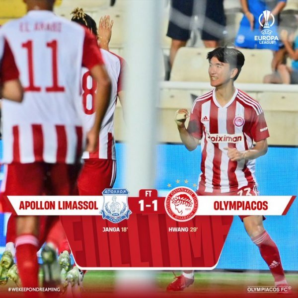 한편 원정에서 귀중한 승점 1점을 챙긴 올림피아코스는 26일 홈 구장 카라이스카키 스타디움에서 플레이오프 2차전을 치른다. 승리하면 UEL 본선 진출권을 얻는다.