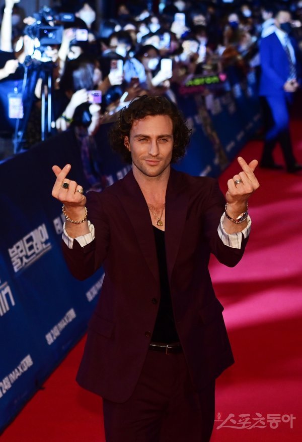 배우 애런 테일러 존슨이 19일 서울 용산구 CGV용산아이파크몰점에서 열린 영화 ‘불릿 트레인’ 레드카펫에서 포즈를 취하고 있다.