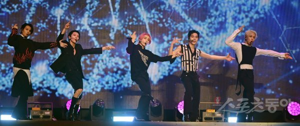 그룹 웨이션브이가 20일 경기도 수원월드컵경기장에서 열린 ‘SMTOWN LIVE 2022 : SMCU EXPRESS @HUMAN CITY_SUWON(SM타운 라이브)’에서 공연을 펼치고 있다.
