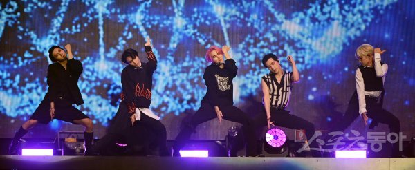 그룹 웨이션브이(WayV)가 20일 경기도 수원월드컵경기장에서 열린 ‘SMTOWN LIVE 2022 : SMCU EXPRESS @HUMAN CITY_SUWON(SM타운 라이브)’에서 공연을 펼치고 있다.