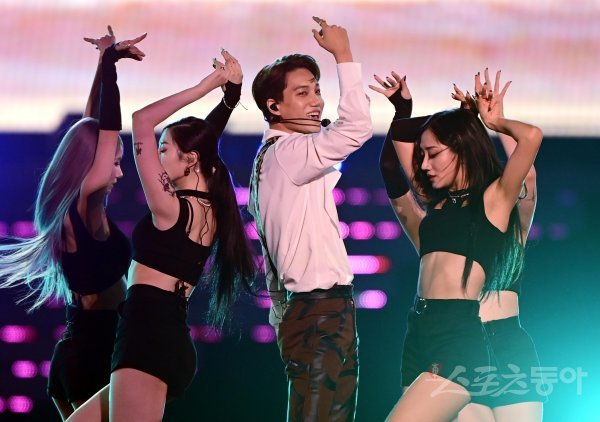 엑소 카이가 20일 경기도 수원월드컵경기장에서 열린 ‘SMTOWN LIVE 2022 : SMCU EXPRESS @HUMAN CITY_SUWON(SM타운 라이브)’에서 공연을 펼치고 있다.