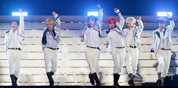 그룹 NCT 127이 20일 경기도 수원월드컵경기장에서 열린 ‘SMTOWN LIVE 2022 : SMCU EXPRESS @HUMAN CITY_SUWON(SM타운 라이브)’에서 공연을 펼치고 있다.