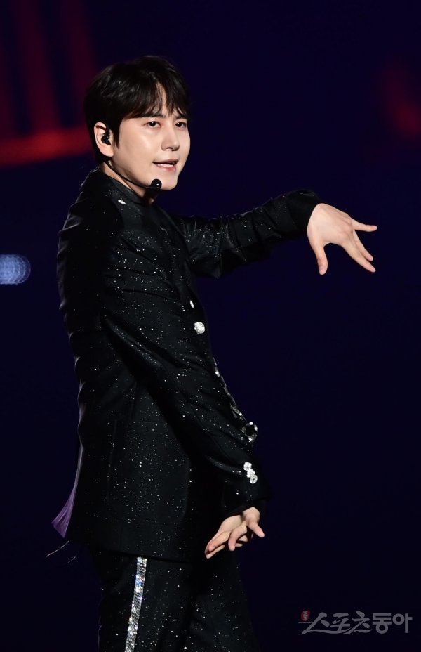 슈퍼주니어 규현이 20일 경기도 수원월드컵경기장에서 열린 ‘SMTOWN LIVE 2022 : SMCU EXPRESS @HUMAN CITY_SUWON(SM타운 라이브)’에서 공연을 펼치고 있다.