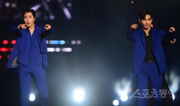 동방신기가 20일 경기도 수원월드컵경기장에서 열린 ‘SMTOWN LIVE 2022 : SMCU EXPRESS @HUMAN CITY_SUWON(SM타운 라이브)’에서 공연을 펼치고 있다.