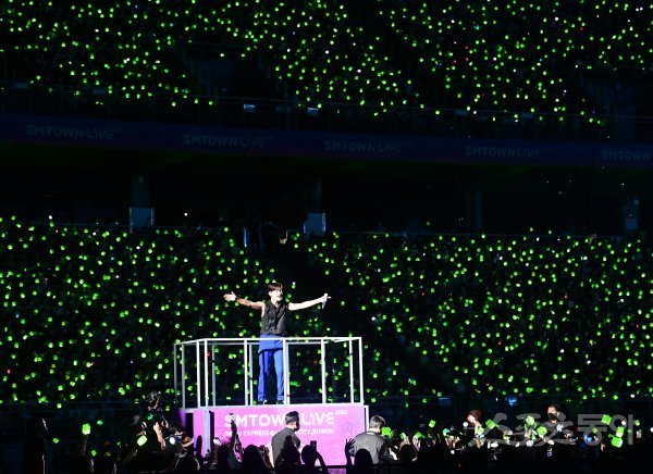 동방신기 최강창민이 20일 경기도 수원월드컵경기장에서 열린 ‘SMTOWN LIVE 2022 : SMCU EXPRESS @HUMAN CITY_SUWON(SM타운 라이브)’에서 공연을 펼치고 있다.