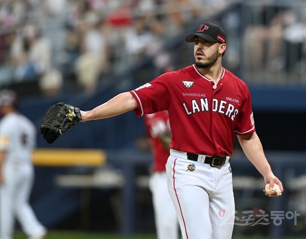 21일 서울 고척스카이돔에서 ‘2022 신한은행 MY CAR KBO리그’ SSG 랜더스와 키움 히어로즈 경기가 열렸다. 선발 투수로 등판한 SSG 모리만도가 1회말 키움의 공격을 삼자범퇴로 막은 후 더그아웃으로 들어가고 있다.