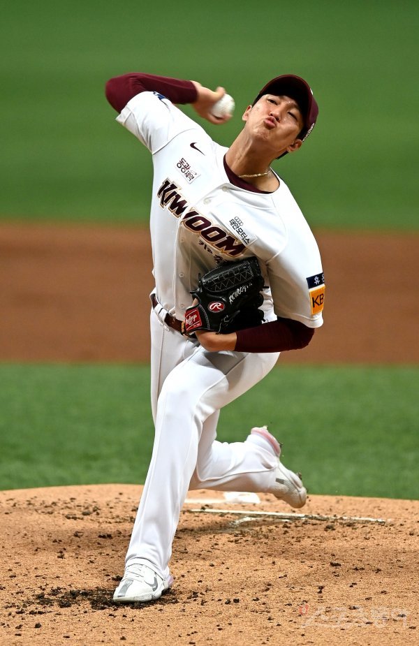 21일 서울 고척스카이돔에서 ‘2022 신한은행 MY CAR KBO리그’ SSG 랜더스와 키움 히어로즈 경기가 열렸다. 선발 투수로 등판한 키움 안우진이 역투하고 있다.