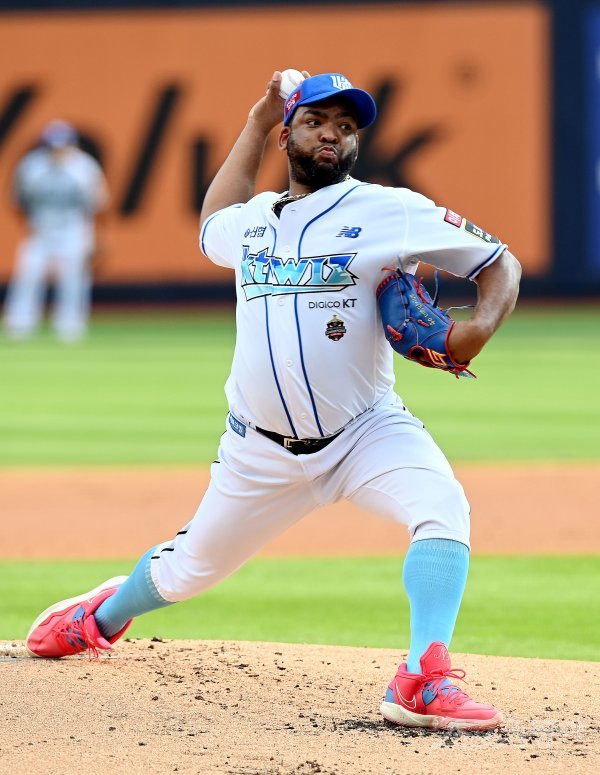 21일 경기도 수원 kt위즈파크에서 ‘2022 신한은행 SOL KBO리그’ kt 위즈와 KIA 타이거즈의 경기가 열렸다. kt 선발투수 데스파이네가 힘차게 볼을 던지고 있다.
