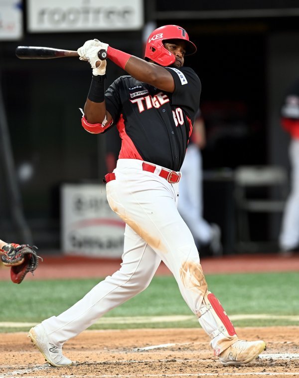 21일 경기도 수원 kt위즈파크에서 ‘2022 신한은행 SOL KBO리그’ kt 위즈와 KIA 타이거즈의 경기가 열렸다. 6회초 무사 1, 2루에서 KIA 소크라테스가 1타점 적시타를 날리고 있다.