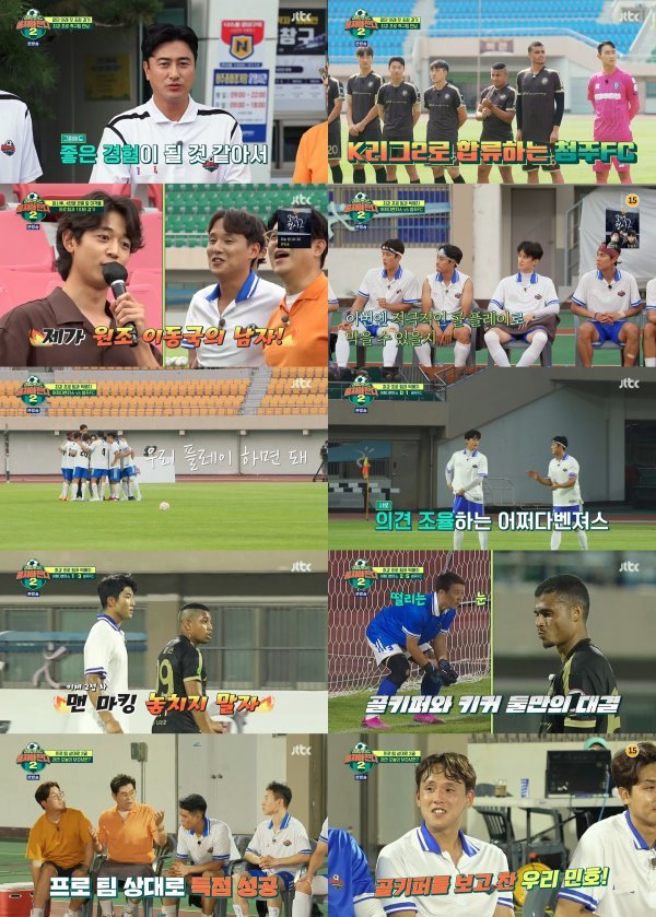 21일 방송된 JTBC ‘뭉쳐야 찬다 2’에서는 ‘어쩌다벤져스’와 청주FC의 초청 경기가 펼쳐졌다. 사상 최초 프로리그 팀과 맞붙은 ‘어쩌다벤져스’는 임남규, 허민호가 골문을 흔들며 프로리그 팀을 상대로 두 골을 기록, 의미 있는 성과를 보여줬다.