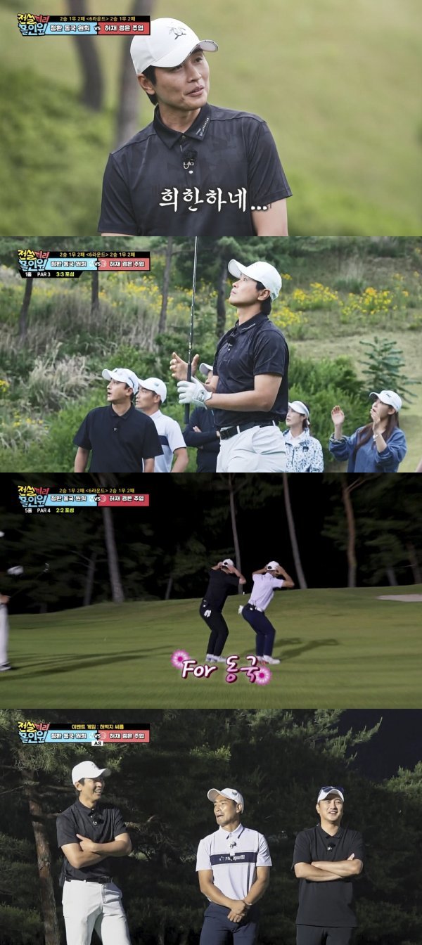 이날 방송에서 이동국은 이제까지의 골프 대결 중 가장 힘든 상황을 맞이한다. 믿었던 주장 안정환마저 실수를 거듭하며 일명 \'조원희화\'가 된 상황. 이동국은 "왠지 1대3으로 싸우는 느낌이다"라며 외로움을 토로한다. 이에 현주엽은 “선후배 잘못 만난 죄”라며 이동국을 몰아가 웃음을 자아내기도.