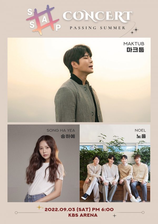 오는 9월 3일 KBS아레나에서 마크툽, 노을, 송하예의 발라드 공연 ‘#SSAP CONCERT’가 개최된다.