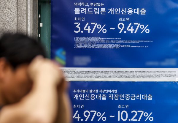 22일 은행연합회 소비자포털 홈페이지에서 은행권의 예대금리차 공시가 시행됐다. 은행별 예대금리차를 쉽게 비교해 소비자의 권익을 보호하고, 은행 간 금리 경쟁을 촉진한다는 취지다. 사진은 최근 서울 한 시중은행 외벽에 설치된 대출 관련 현수막. 사진 | 뉴시스