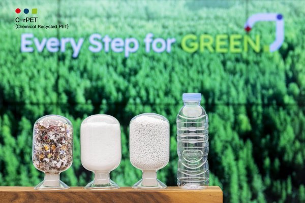 롯데케미칼이 플라스틱 자원선순환 기술로 주목받는 화학적 재활용 페트(C-rPET)의 시생산에 나섰다고 23일 밝혔다.