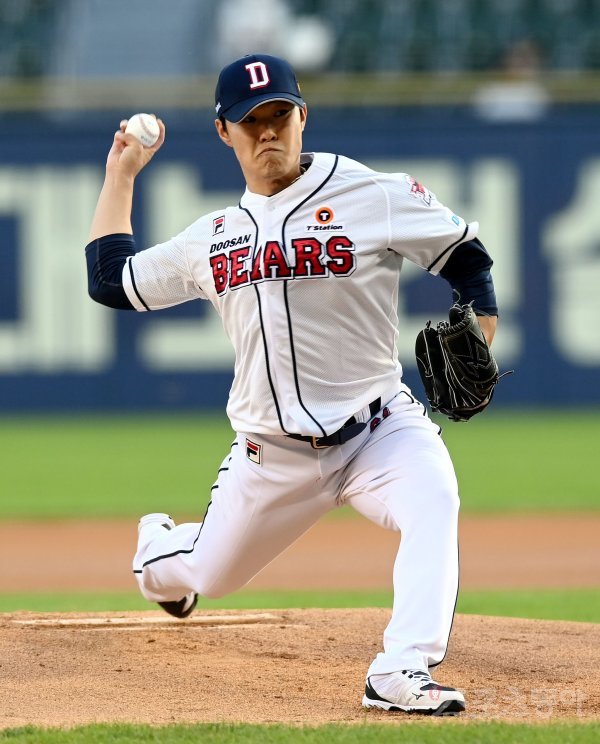 23일 서울 잠실야구장에서 ‘2022 신한은행 SOL KBO리그’ 두산 베어스와 kt 위즈의 경기가 열렸다. 두산 선발투수 최원준이 힘차게 볼을 던지고 있다.