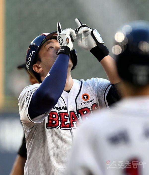 23일 서울 잠실야구장에서 ‘2022 신한은행 SOL KBO리그’ 두산 베어스와 kt 위즈의 경기가 열렸다. 2회말 1사에서 두산 양석환이 솔로 홈런을 쏘아 올린 후 세리머니를 펼치고 있다.