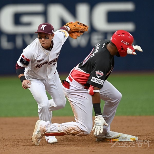 23일 서울 고척스카이돔에서 ‘2022 신한은행 MY CAR KBO리그’ KIA 타이거즈와 키움 히어로즈 경기가 열렸다. 9회초 무사 1,2루 KIA 소크라테스가 중전 안타를 치고 2루까지 달렸으나 아웃되고 있다.