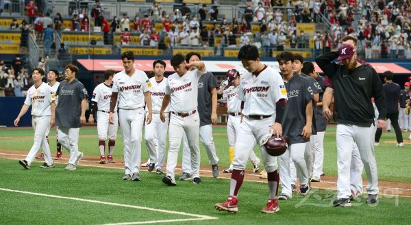 23일 서울 고척스카이돔에서 ‘2022 신한은행 MY CAR KBO리그’ KIA 타이거즈와 키움 히어로즈 경기가 열렸다. 3-12로 패하며 6연패에 빠진 키움 선수들이 그라운드를 빠녀나가고 있다.