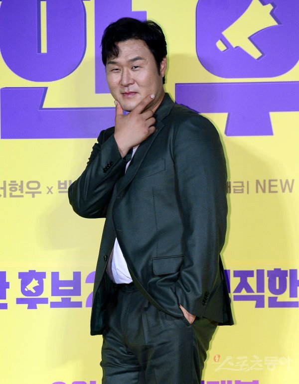 24일 오전 서울 롯데시네마 건대입구에서 열린 영화 ’정직한 후보2’의 제작보고회에 참석한 윤경호가 포즈를 취하고 있다.