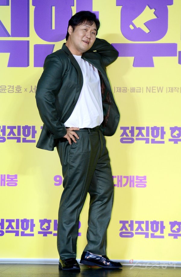 24일 오전 서울 롯데시네마 건대입구에서 열린 영화 ’정직한 후보2’의 제작보고회에 참석한 윤경호가 포즈를 취하고 있다.