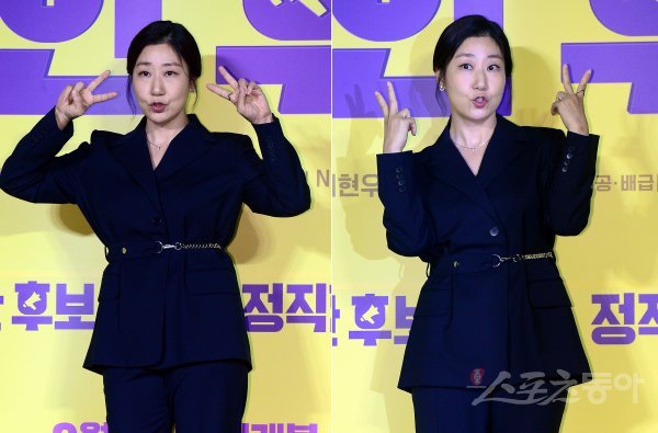 24일 오전 서울 롯데시네마 건대입구에서 열린 영화 ’정직한 후보2’의 제작보고회에 참석한 라미란이 포즈를 취하고 있다.