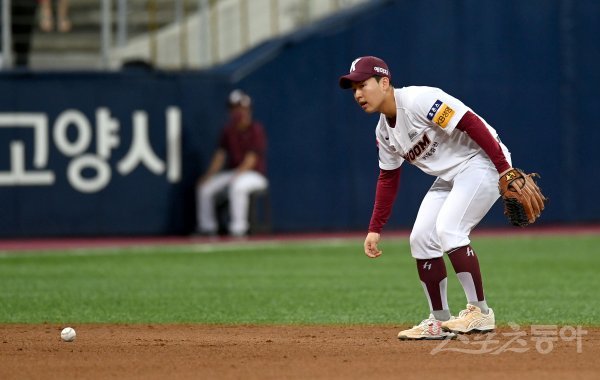 24일 서울 고척스카이돔에서 ‘2022 신한은행 MY CAR KBO리그’ KIA 타이거즈와 키움 히어로즈 경기가 열렸다. 5회초 무사 키움 김휘집이 포구 실책을 하고 있다.