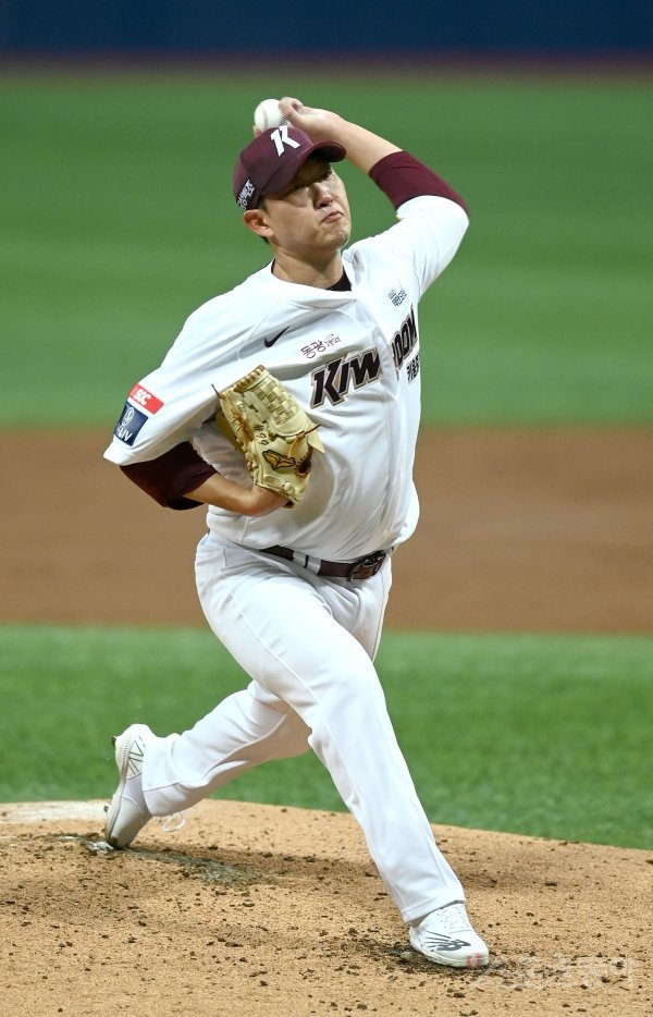 24일 서울 고척스카이돔에서 ‘2022 신한은행 MY CAR KBO리그’ KIA 타이거즈와 키움 히어로즈 경기가 열렸다. 선발 투수로 등판한 키움 윤정현이 역투하고 있다.