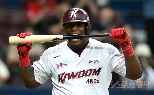 24일 서울 고척스카이돔에서 ‘2022 신한은행 MY CAR KBO리그’ KIA 타이거즈와 키움 히어로즈 경기가 열렸다. 9회말 1사 1루 키움 푸이그가 외야 뜬공으로 아웃된 후 아쉬워하고 있다.