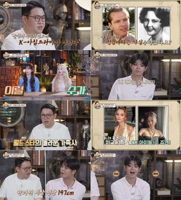 이날 김구라는 할리우드 배우 잭 니콜슨 가족을 9위로 소개하며 “출생의 비밀이 없으면 K-아침 드라마가 아니라는 말이 있다. 우리가 생각하는 것 이상으로 복잡하다. 정신 단단히 차려야 한다”고 강조했다.
