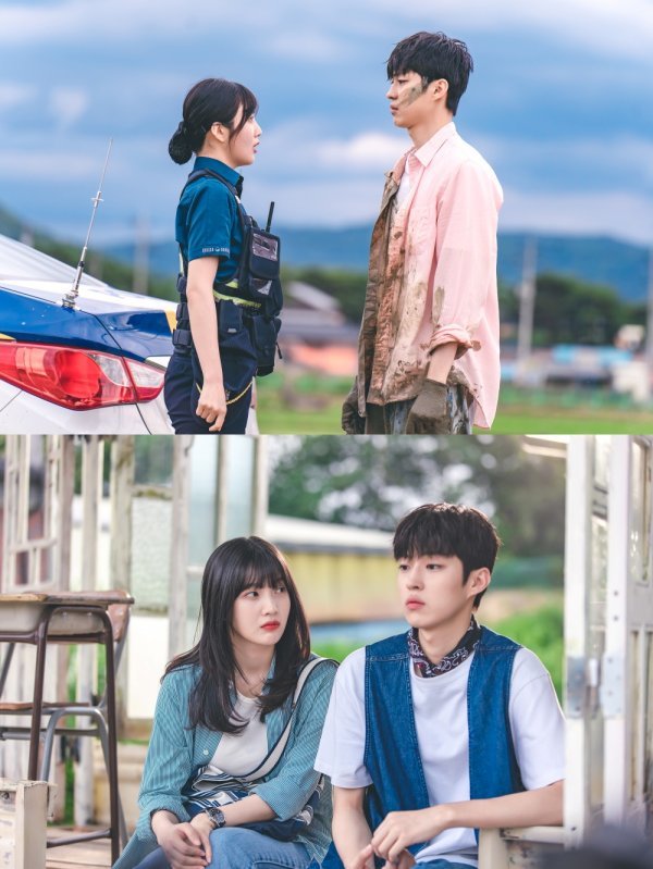 그럼에도 오늘(25일) 공개된 스틸컷 속 자영과 상현의 모습에선 희망이 보인다. 자영과 상현은 태어날 때부터 지금까지 27년 친구였던 만큼, 둘 사이에는 다른 사람이 끼어들 수 없는 끈끈함, '베프 케미'가 있기 때문이다. 자영이 마치 사고뭉치 ‘대형 댕댕이’처럼 진흙에 빠졌다 나온 것 같은 상현에게 폭풍 잔소리를 시전하거나, 경찰복을 벗고 ‘안 순경’ 모드를 해제하고는 상현을 만나 고민을 털어놓기도 한다. 마을의 모든 일에 촉을 세우고 ‘인간 민원센터’로 활약하는 자영이 자신의 ‘민원’을 해결하기 위해 찾아가는 이가 바로 남사친 상현이다.