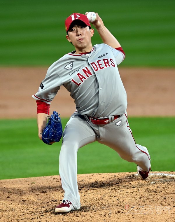25일 경기도 수원 kt위즈파크에서 ‘2022 신한은행 SOL KBO리그’ kt 위즈와 SSG 랜더스의 경기가 열렸다. SSG 선발투수 오원석이 힘차게 볼을 던지고 있다.