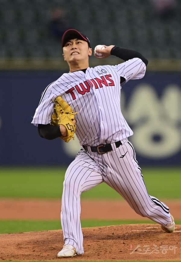 25일 서울 잠실야구장에서 열린 ‘2022 신한은행 SOL KBO리그’ LG 트윈스와 KIA 타이거즈의 경기에서 선발 투수로 마운드에 오른 LG 김윤식이 역투하고 있다.