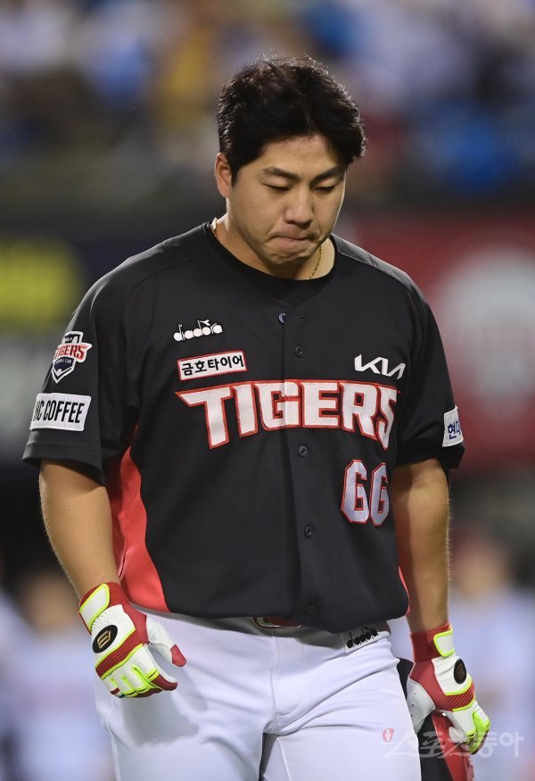 25일 서울 잠실야구장에서 열린 ‘2022 신한은행 SOL KBO리그’ LG 트윈스와 KIA 타이거즈의 경기에서 3회초 1사 1루 KIA 이창진이 1루수 직선타로 1루주자까지 아웃되자 아쉬워하고 있다.