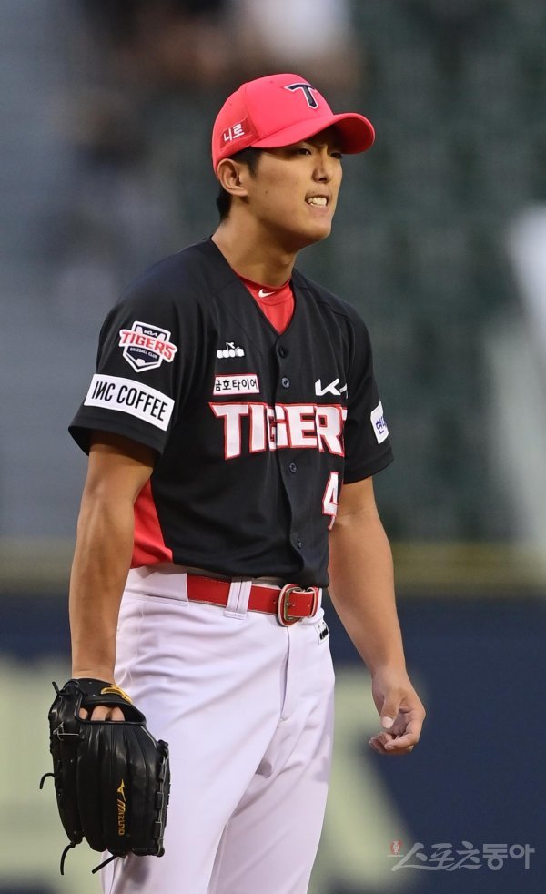 25일 서울 잠실야구장에서 열린 ‘2022 신한은행 SOL KBO리그’ LG 트윈스와 KIA 타이거즈의 경기에서 1회말 무사 LG 홍창기에게 몸에 맞는 볼을 던진 KIA 이의리가 아쉬워하고 있다.