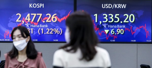 주식 시장에도 부정적 영향이 점쳐진다. 원화 가치 하락세가 이어질 경우 외국인들이 환손실을 피하기 위해 국내 증시에서 돈을 빼가는 흐름이 가속화되기 때문이다. 25일 코스피 지수는 전 거래일보다 29.81p(1.22%) 오른 2477.26, 코스닥은 14.23p(1.79%) 오른 807.37에 마감했지만, 지난주 초까지 안도랠리를 이어오며 2530선 위로 치솟았던 때와는 기류가 바뀌었다는 게 증시 관계자들의 한 목소리다.