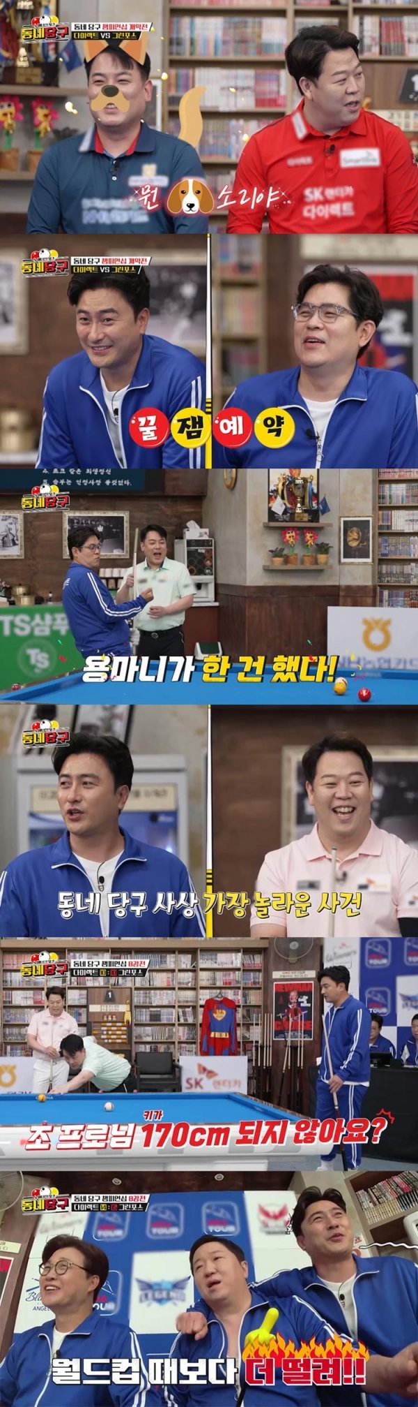 26일 방송되는 ‘동네당구’ 8회에서는 7개 프로 당구 구단과 김용만, 김성주, 안정환, 정형돈이 참여하는 ‘동네당구 챔피언십’을 벌인다.