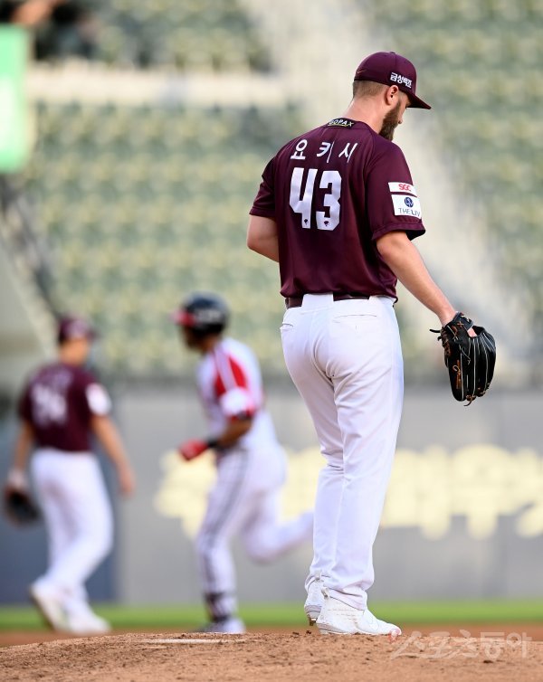 28일 서울 잠실야구장에서 ‘2022 신한은행 MY CAR KBO리그’ 키움 히어로즈와 LG 트윈스 경기가 열렸다. 키움 선발 요키시가 4회말 1사 LG 가르시아에게 좌월 솔로 홈런을 허용하고 있다.