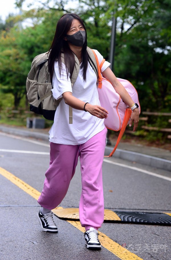 한국여자축구대표팀 최유리가 평가전을 앞두고 29일 경기도 파주 국가대표 트레이닝센터(NFC)에 소집되어 훈련장으로 향하고 있다.