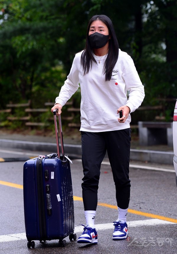 한국여자축구대표팀 윤영글이 평가전을 앞두고 29일 경기도 파주 국가대표 트레이닝센터(NFC)에 소집되어 훈련장으로 향하고 있다.