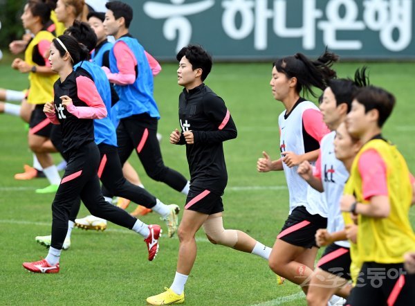 한국여자축구대표팀이 자메이카와 평가전을 앞두고 29일 경기도 파주 국가대표 트레이닝센터(NFC)에 소집돼 훈련을 가졌다. 여자축구대표팀 지소연이 셔틀런 훈련을 펼치고 있다.