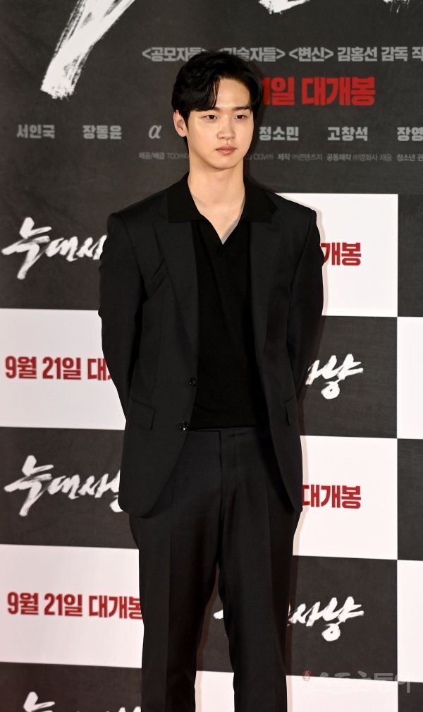 29일 서울 CGV용산에서 열린 영화 ‘늑대사냥’ 프로젝트 보고회에서 배우 장동윤이 포토타임을 갖고 있다.