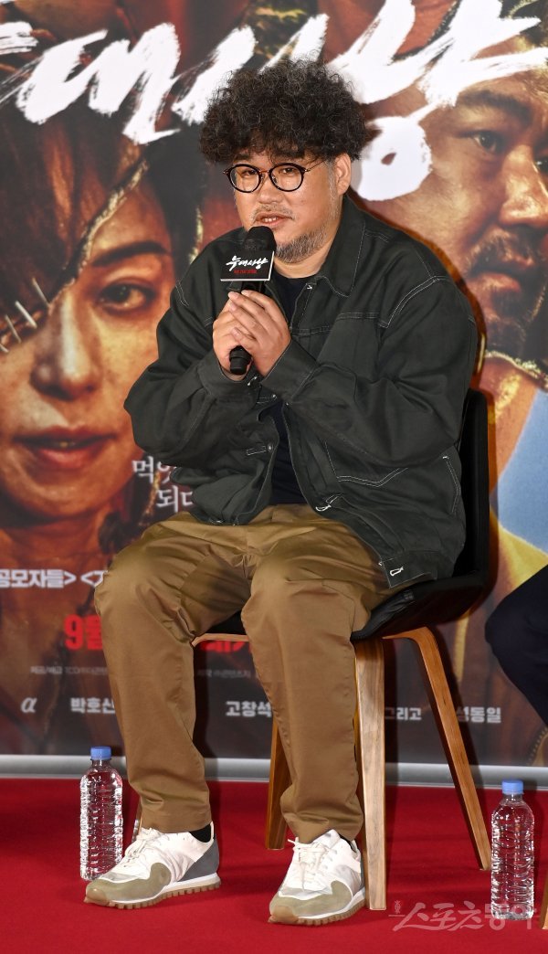 29일 서울 CGV용산에서 열린 영화 ‘늑대사냥’ 프로젝트 보고회에서 김홍선 감독이 취재진의 질문에 대답하고 있다.
